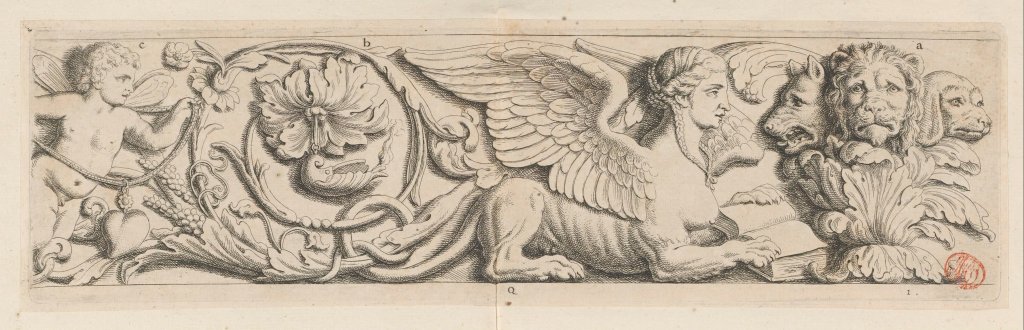 Le sphinx, issu de la mythologie grecque, est une créature hybride (corps de lion, tête de femme, ailes d’oiseau) qui représente l’énigme, la fatalité et la connaissance interdite. Dans la légende d’Œdipe, il pose une devinette aux voyageurs et dévore ceux qui échouent à répondre.