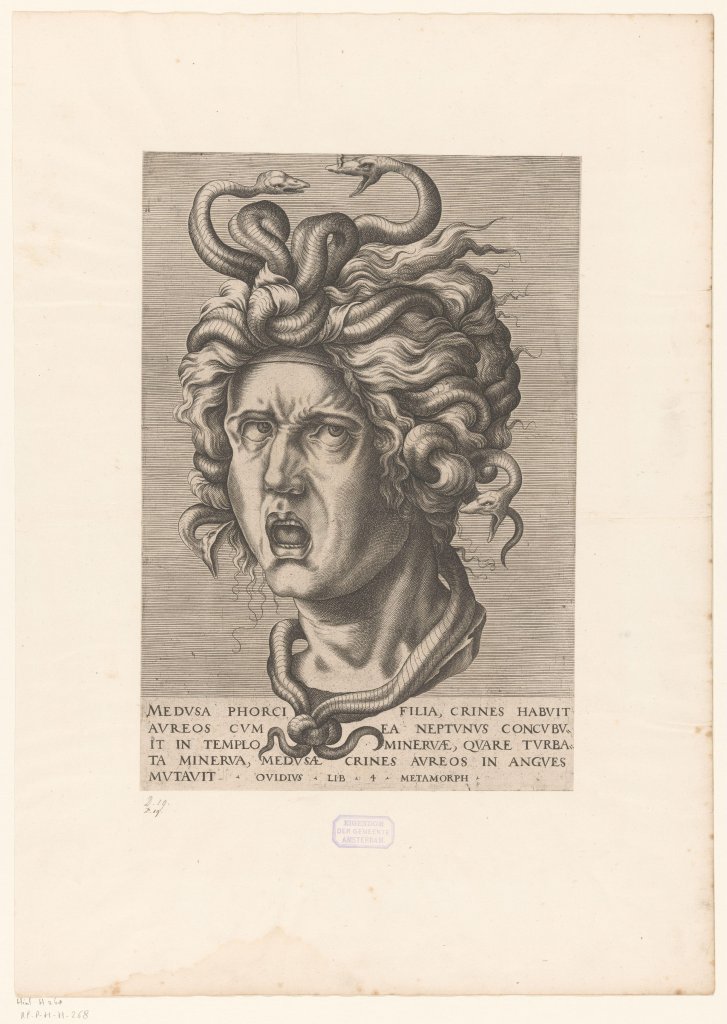 Méduse et les Gorgones sont des figures mythologiques de la Grèce antique, souvent représentées comme des créatures monstrueuses aux cheveux de serpents et au regard pétrifiant. Parmi les trois sœurs—Méduse, Euryale et Sthéno—seule Méduse était mortelle. Victime de la colère d’Athéna après avoir été violée par Poséidon dans un temple de la déesse, elle fut transformée en monstre. Son destin tragique s’achève lorsque Persée, muni d’un bouclier réfléchissant offert par Athéna, la décapite. De son sang naissent Pégase, le cheval ailé, et Chrysaor. La tête de Méduse, conservée par Persée, devient une arme redoutable avant d’être placée sur l’égide d’Athéna. Symbole de terreur mais aussi de protection, Méduse a traversé les siècles, inspirant l’art et la culture contemporaine.